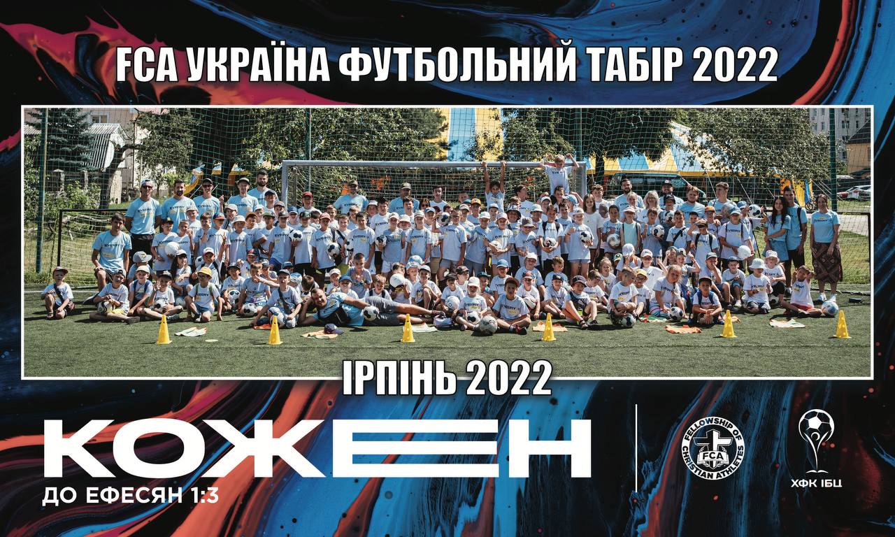У перших числах серпня територію ІБЦ знову заполонили діти, але цього разу це були маленькі футболісти. Християнська Футбольна Спілка України (ХФСУ) разом з Асоціацією Християн Спортсменів (FCA) провели футбольний табір під гаслом “Кожен”. 120 дітей, 14 тренерів-християн, та 6 волонтерів з різних куточків України стали учасниками цієї події.