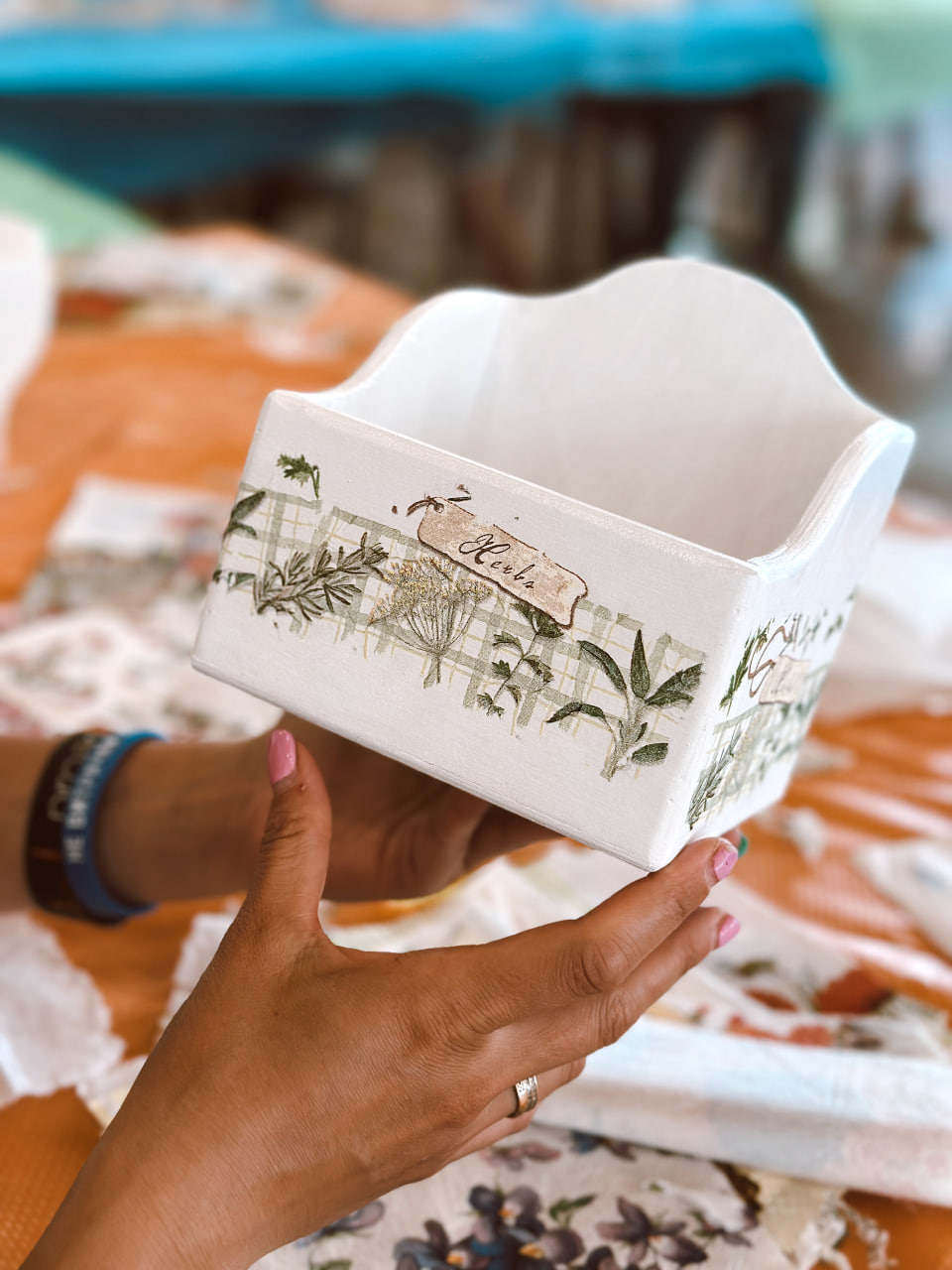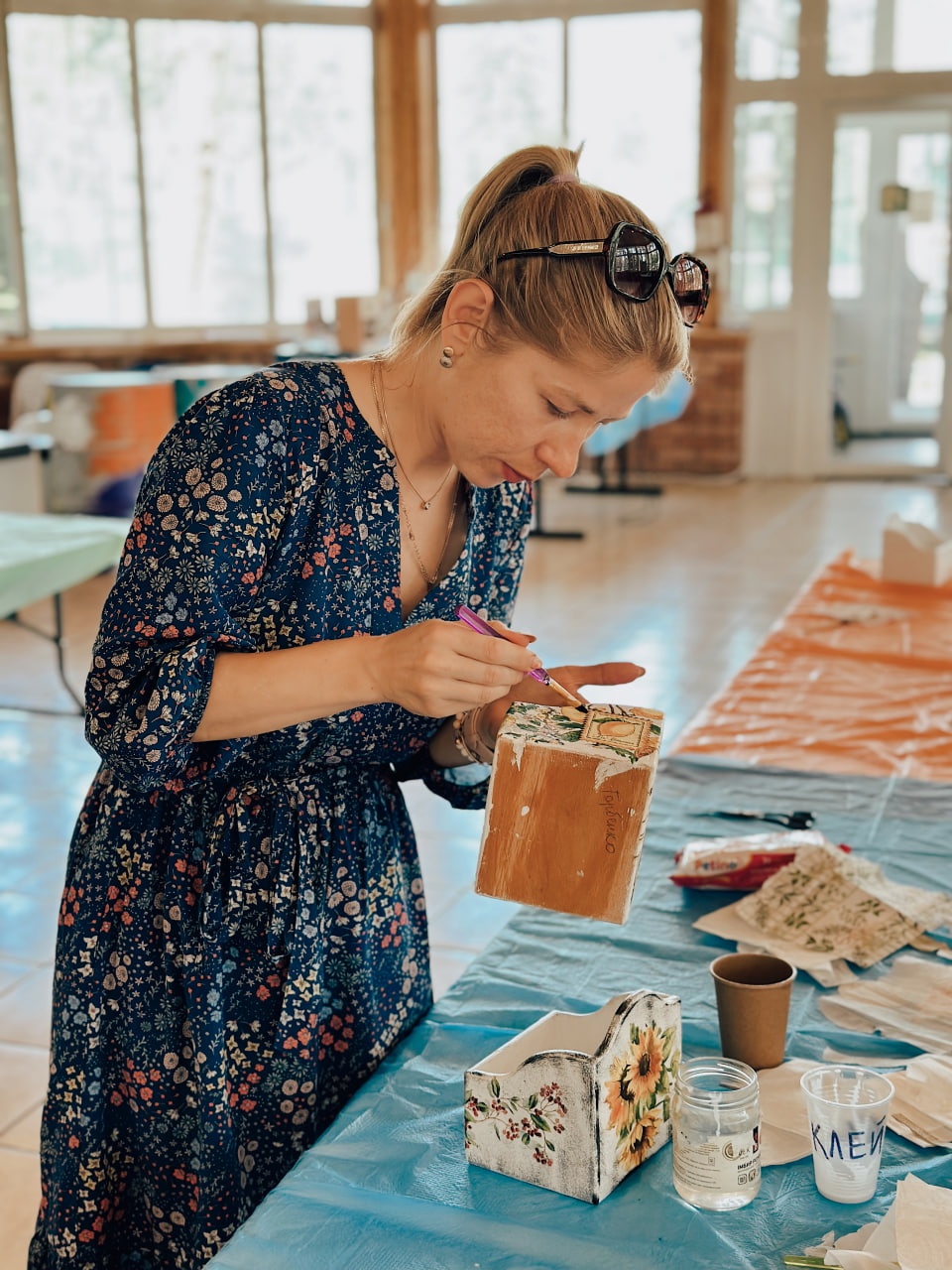 У атмосфері творчості та краси разом творили прикраси для побутових речей – органайзери для спецій або канцелярії. Більшість з них вперше працювала в техніці декупажу, але це не завадило їм отримати неймовірну насолоду від процесу та чудовий результат.