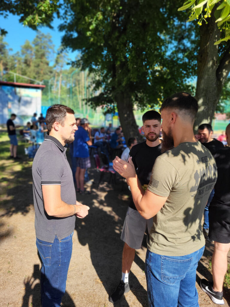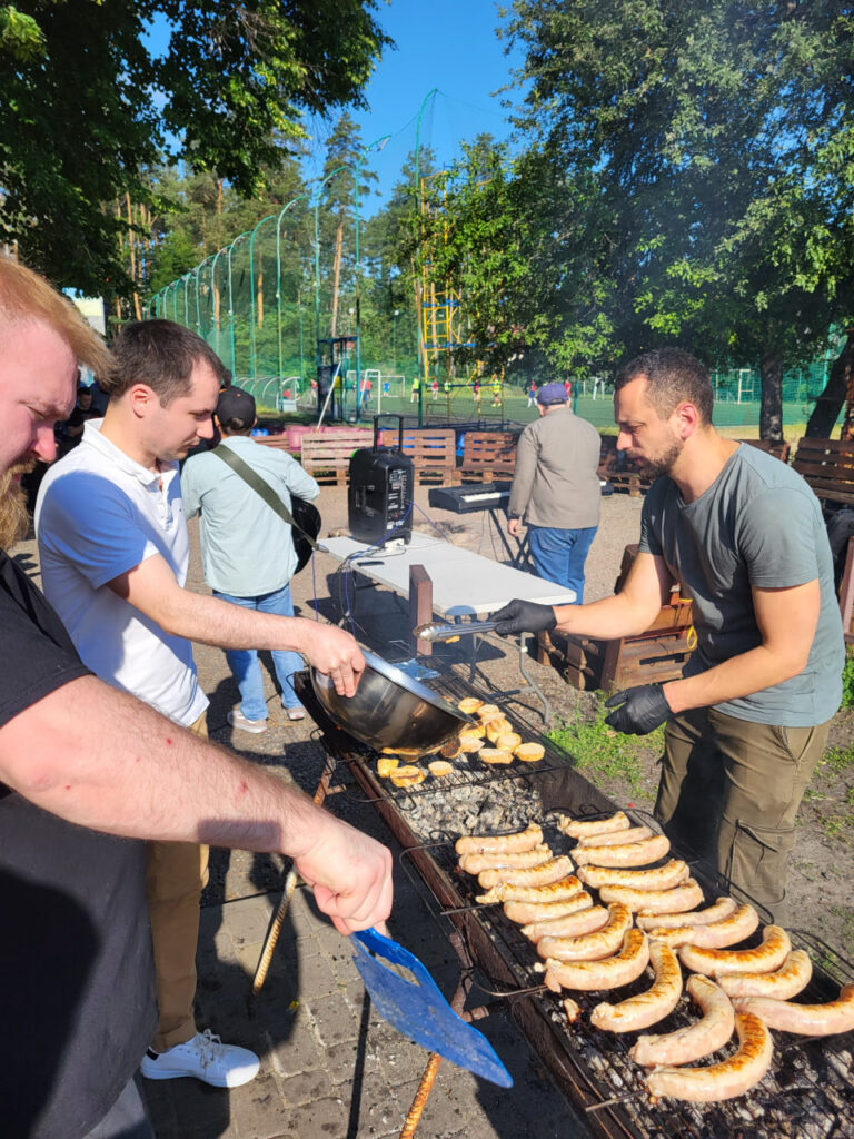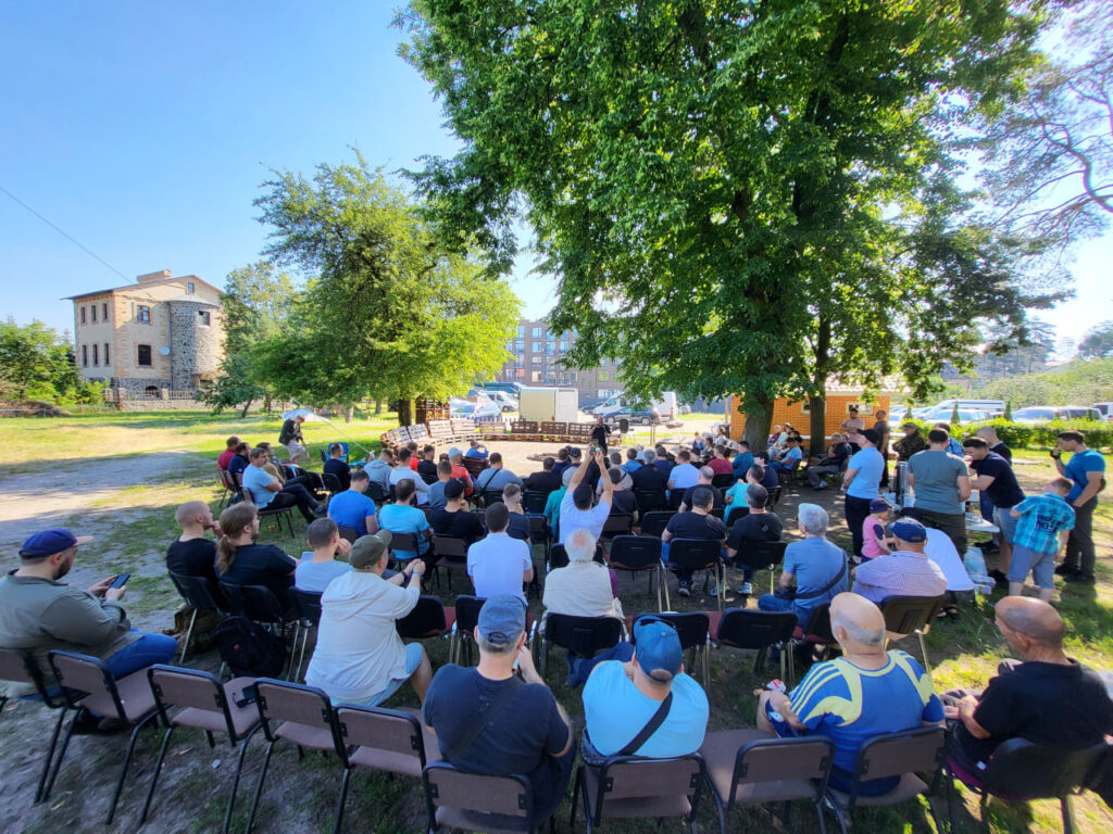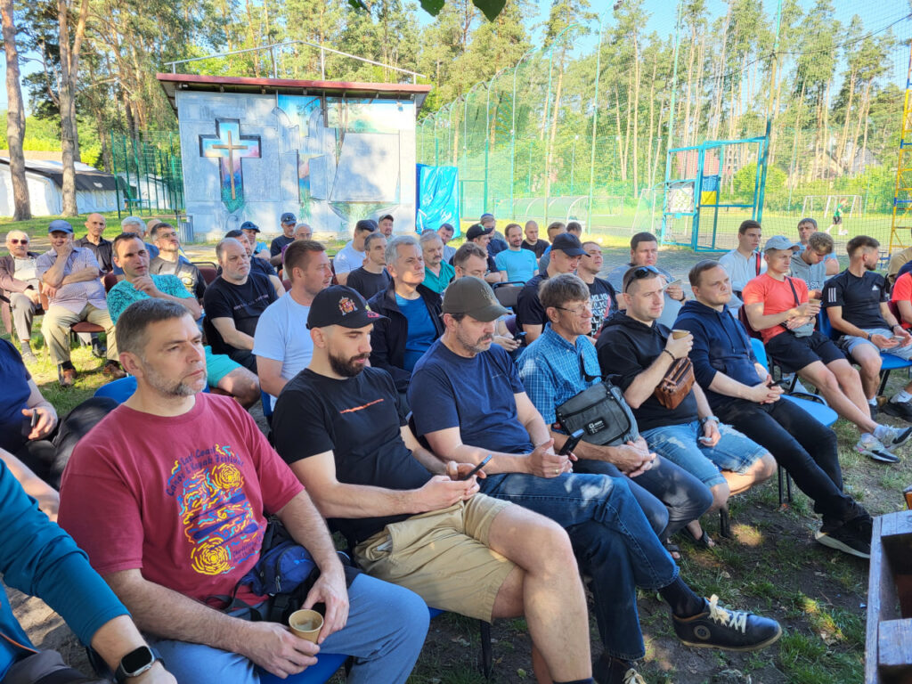 Після викладення теми, чоловіки обговорили почуте у групах та поділилися тим, яку роль для них відігравала віра на початку війни, а також як вони підтримують духовне та емоційне здоров’я зараз. Багато спілкувались, насолоджувались погодою і, як завжди, смачною їжею на мангалі.